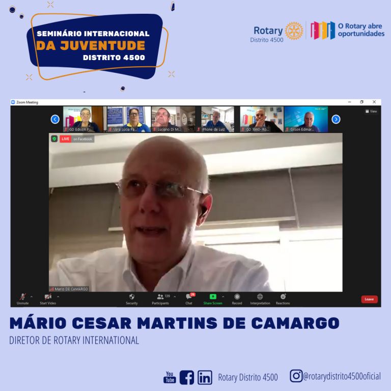 Durante o evento, tivemos a presença de nosso Diretor de Rotary International, Companheiro Mário Cesar Martins de Camargo, que fez a apresentação do Presidente do Rotary International 2020-2021 Holger Knaack.